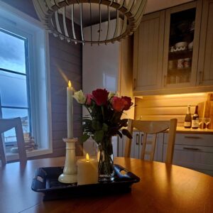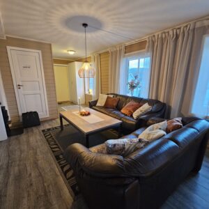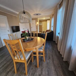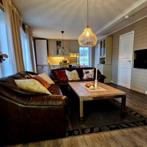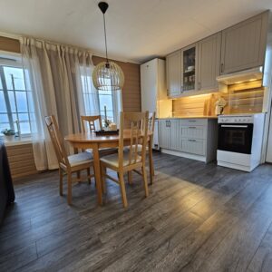 - Living room / kitchen in an open solution with electric heating and wood burning.